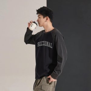 Be the first to review “Autumn Men’s Long-sleeved T-shirt Top Men’s Crewneck Front Chest Text Printed Raglan Sleeves”